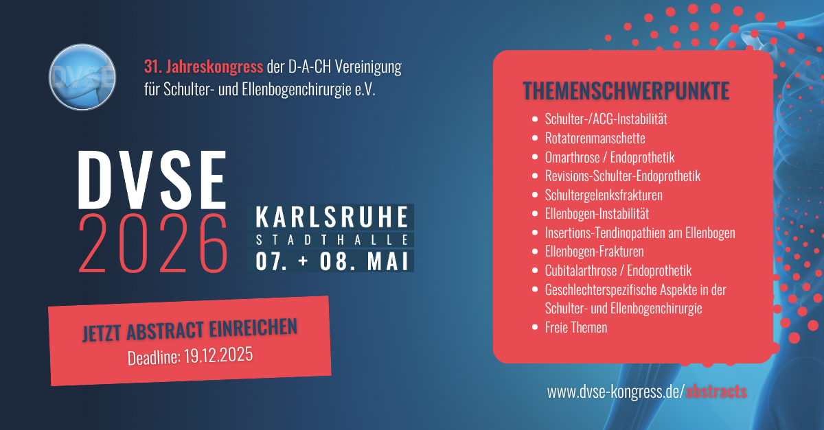 Machen Sie Ihr Netzwerk auf die Abstracteinreichung des 31. Jahreskongress der DVSE aufmerksam und nutzen Sie unsere Grafiken für Ihre sozialen Medien, Fachvorträge und Mails!